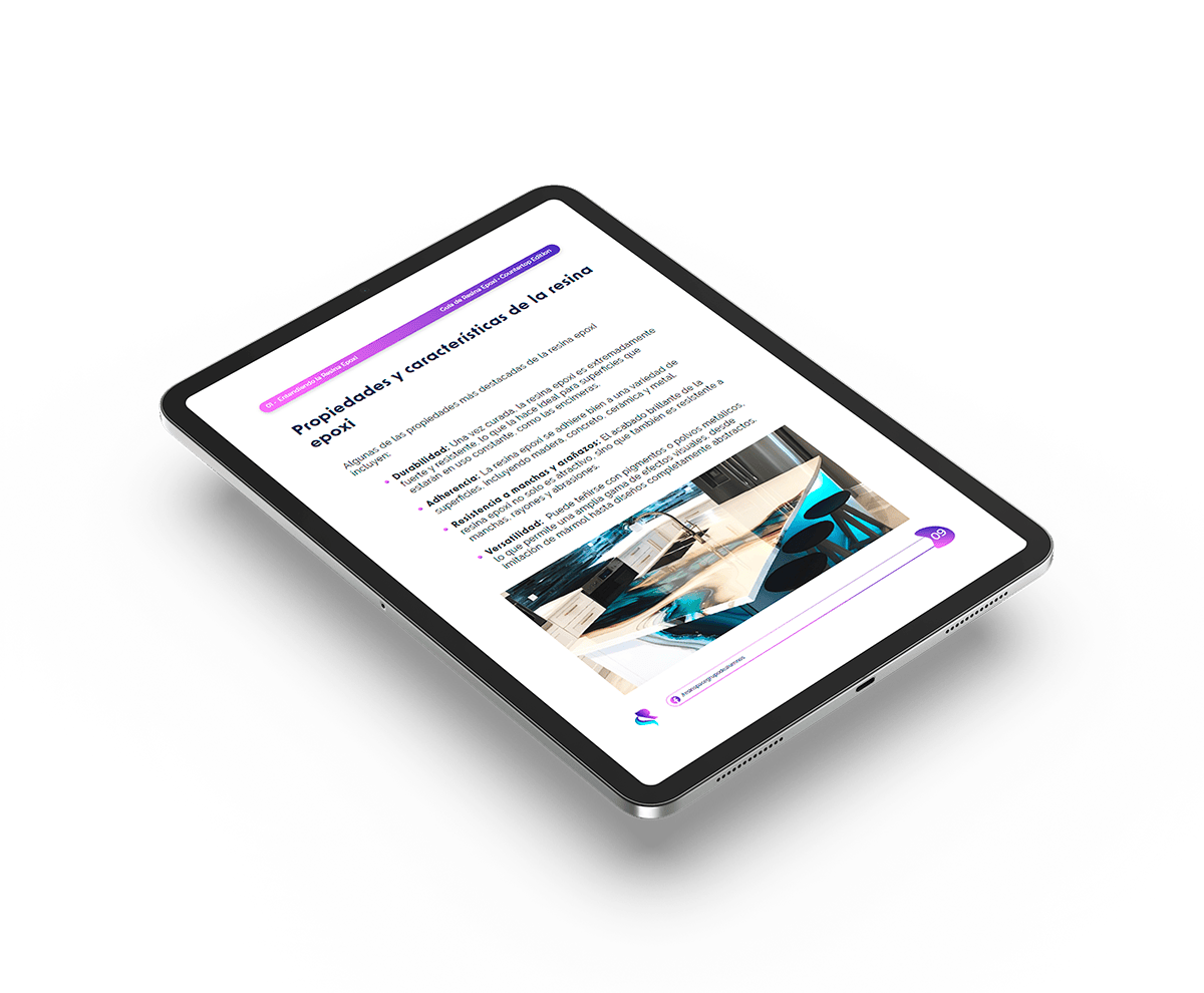 Dentro del ebook encontrarás un video exclusivo que te muestra cómo aplicar la técnica de Pouring, brindándote una referencia visual para aplicar la resina epoxi correctamente.